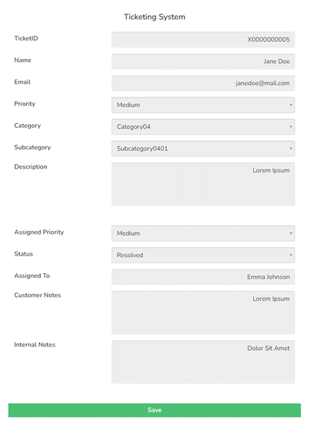 The Simple Ticketing System Template can be tailored to suit the particular requirements of any organization. It includes features for categorizing issues to simplify the submission workflow and offers flexibility in choosing between manual or automated assignment methods based on the reported issues.