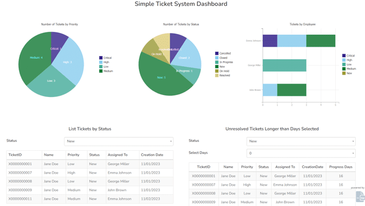 The user-friendly design of the Simple Ticketing System Dashboard is a powerful tool for organizations looking to streamline their ticket management processes. The dashboard transforms complex information into digestible insights by presenting data in visually compelling ways, such as pie charts and graphs. This not only simplifies the analysis of ticket-related activities but also empowers decision-makers to act promptly based on a comprehensive understanding of the real-time data. The interactive features embedded within the dashboard allow users to explore and manipulate the data, fostering a dynamic and engaging experience that goes beyond static reporting.