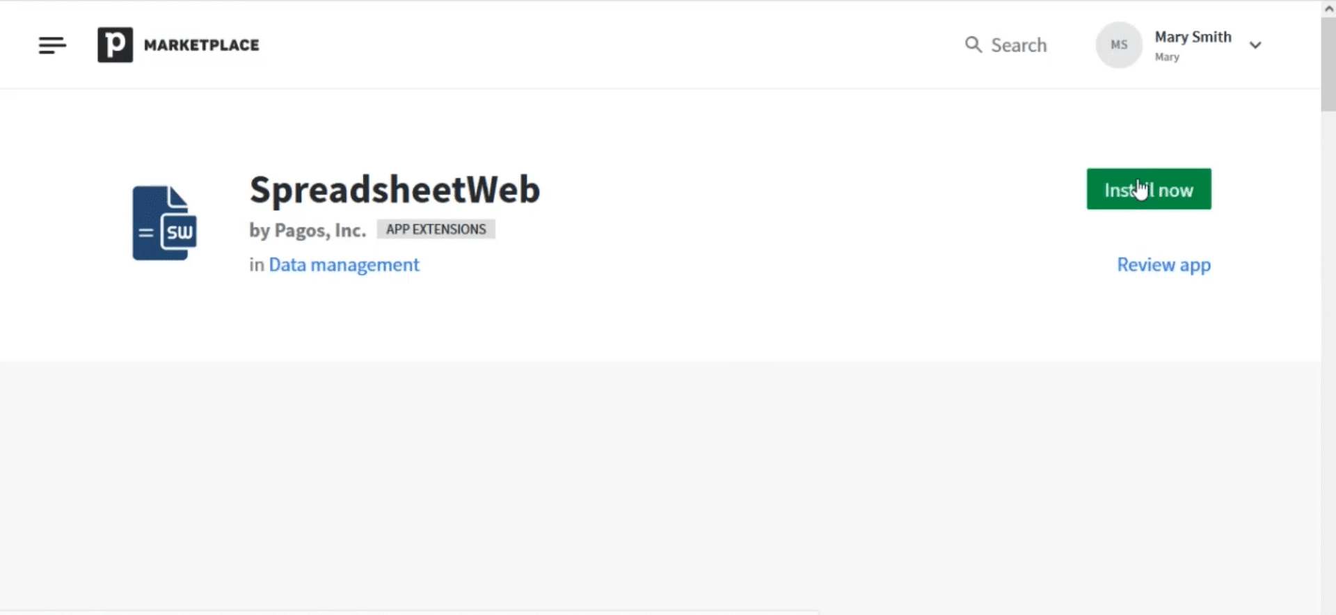 Using matching names will be helpful when it comes to mapping the fields between Pipedrive and the SpreadsheetWeb application. Next, go to the Apps Marketplace and install the SpreadsheetWeb extension. Now, it’s time to add the application.
