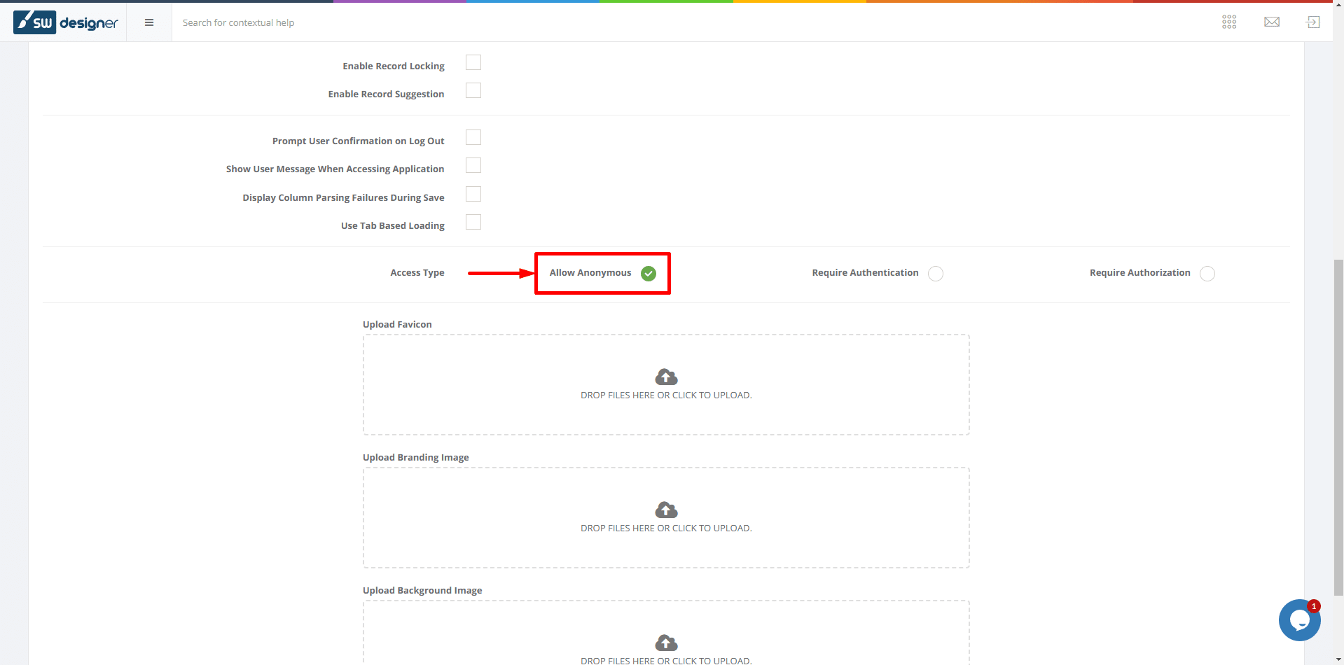 The access type defines how users can interact with your application. By default, the access type is set to Allow Anonymous, which means anyone with the application link can access it. This setting is ideal for public-facing applications where unrestricted access is desired.