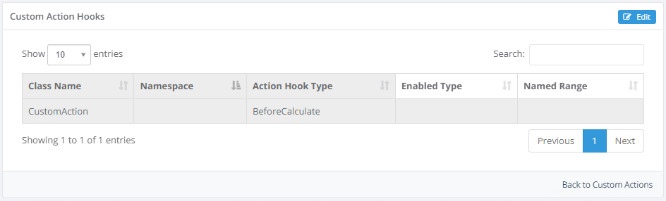 - The available custom action hooks within the Designer are exposed in the external interfaces. By creating a class that implements one or more of these interfaces, you can trigger execution of custom code at the following target events.