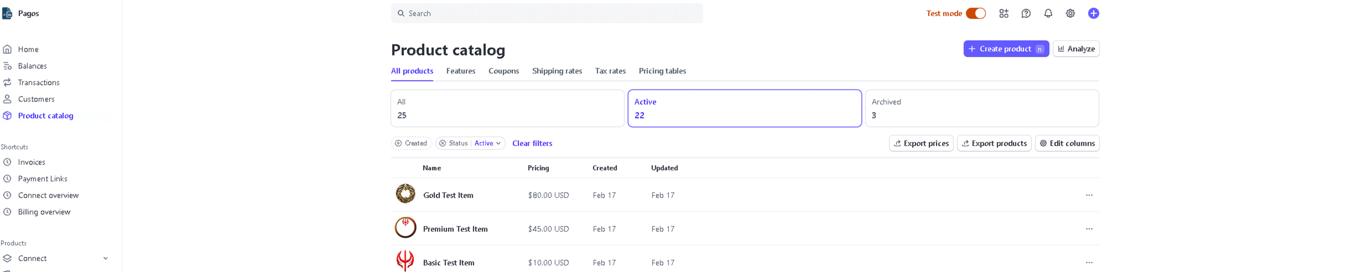 - Go to the Stripe Dashboard and navigate to Products.